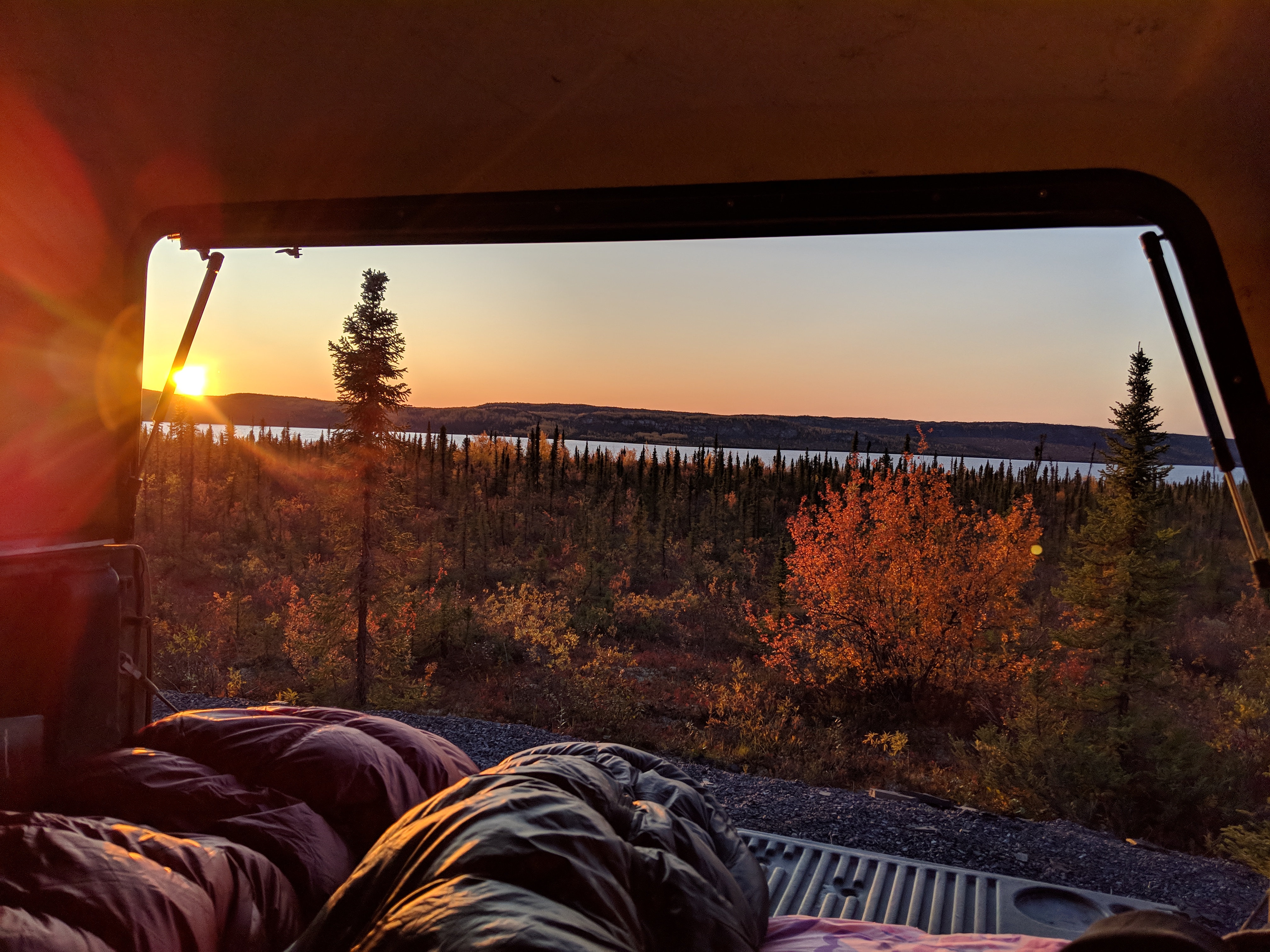 Just outside of town is the Gwichin campground and we got a pretty incredible sunset while cozy-ing up in the back of the pick up truck.